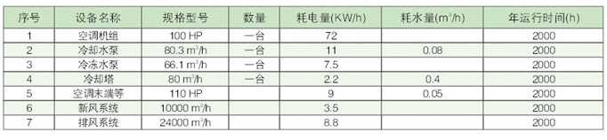 2、中央空調工程所需設備及能耗: