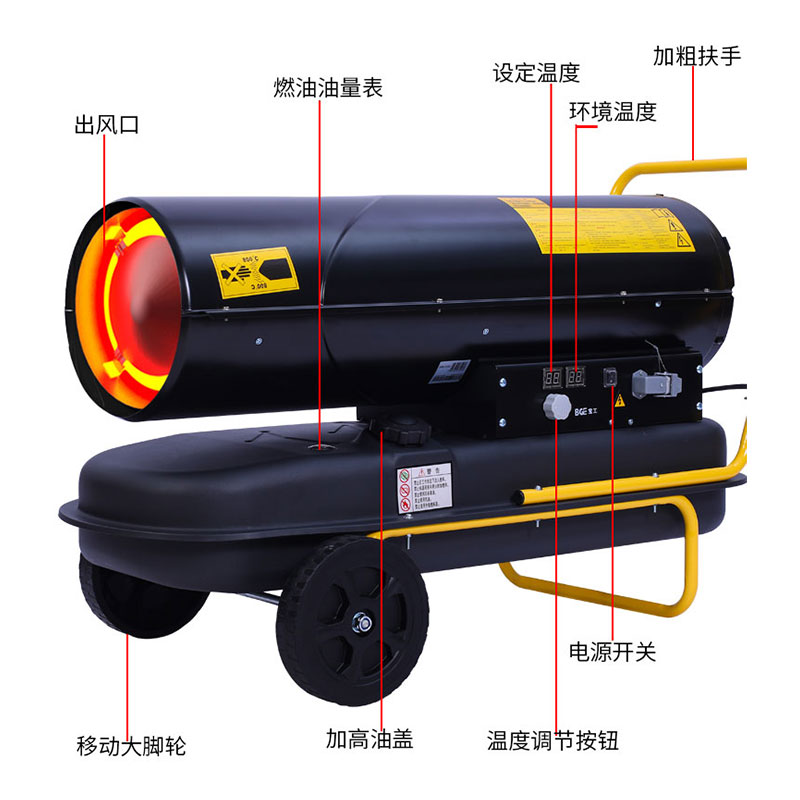 安全可靠:燃油暖風機采用多重安全保護措施,如過熱保護、斷電保護等,確保設備在使用過程中的安全性。